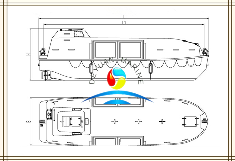 Comparing with totally enclosed lifeboat with same capacity,the original structure and arrangement of partially