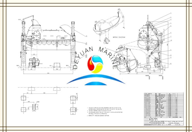 Model | Main DIM. | Capacity (p) | Hook distance(m) | Max.height (m) | Davit load (kg) |