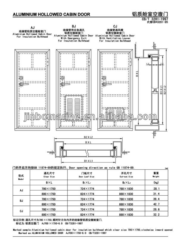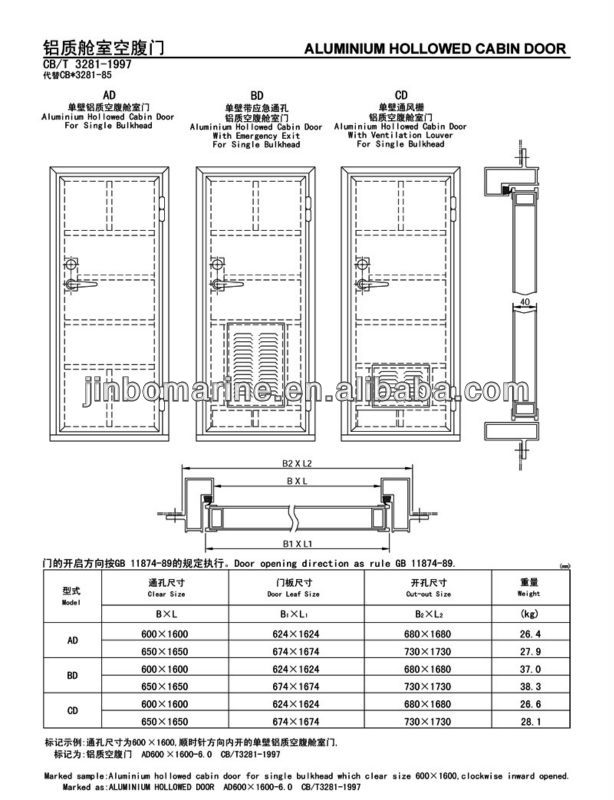 It is used as the cabin door of various kinds of ships and war ships.The door face will be anodized baking finished or PV covered.