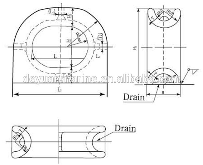 | Nominal DIA(mm) | L | L1 | L2 | L3 | L4 | B | H | H1 | H2 | H3 | R | R1 | R2 | R3 | r1 | r2 | T | T1 | Calculated mass(kg) | DIA of applicable rope in reference(mm) | |